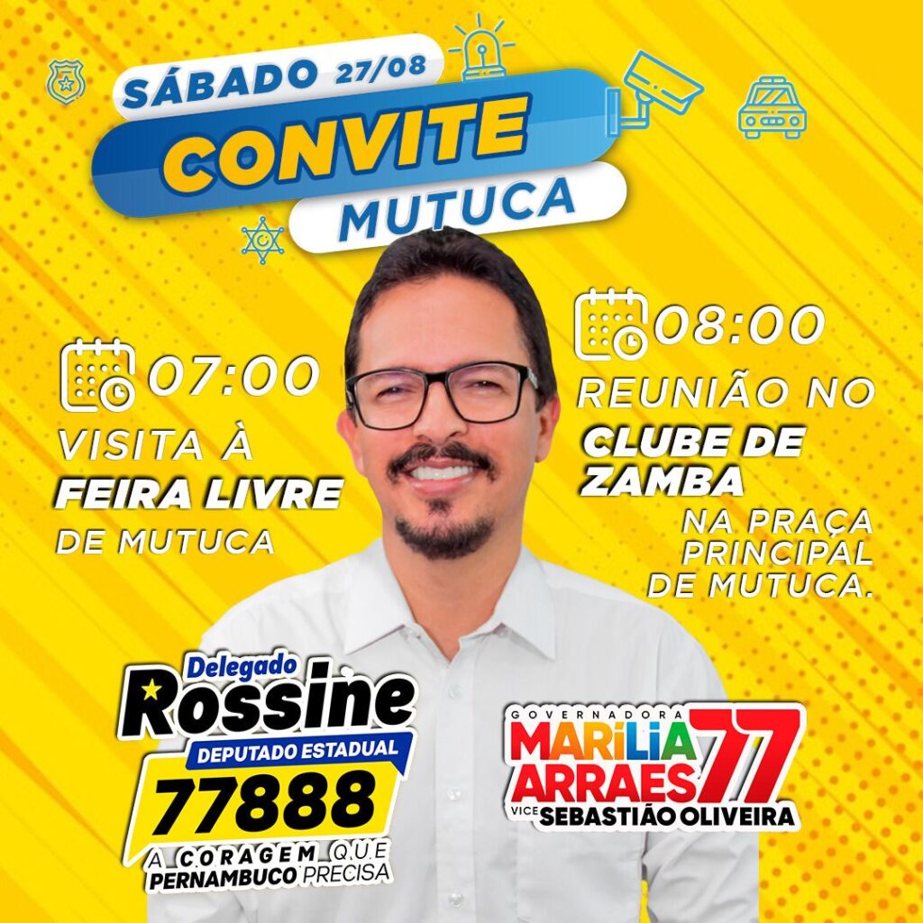 A agenda inclui uma marcante participação em um dos mais proeminentes distritos de Pesqueira: Mutuca. Logo às 7h da manhã, o delegado Rossine caminha com lideranças na Feira Livre de Mutuca, onde fala com os microempresários e empreendedores.