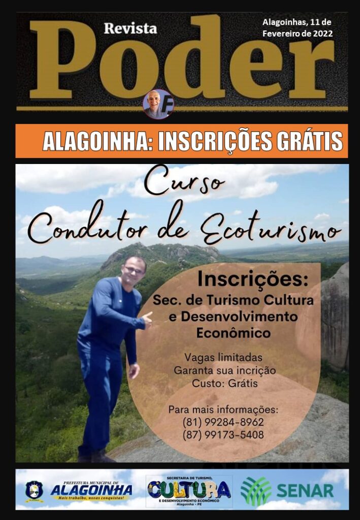 ALAGONHA (PE) – A Prefeitura de Alagoinha, através da Secretaria de Turismo, Cultura e Desenvolvimento Econômico, e o Serviço Nacional de Aprendizagem Rural (SENAR), oferece o “Curso de Condutor de Ecoturismo” totalmente gratuito.