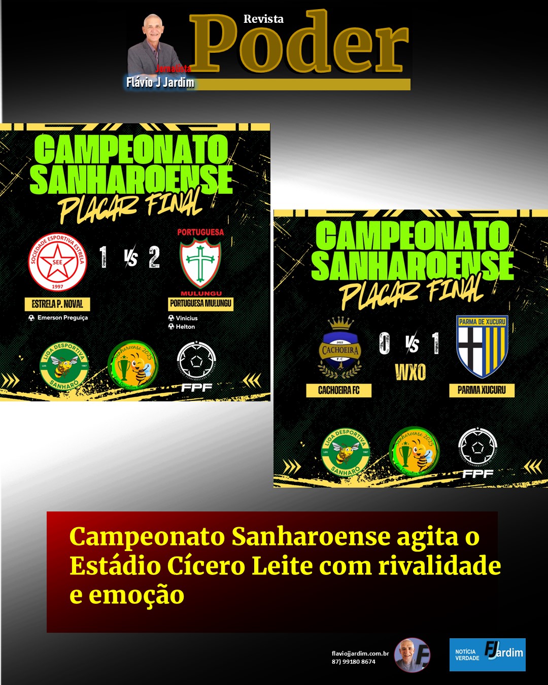 O Estádio Cícero Leite, em Sanharó, voltou a ser palco de grandes emoções neste domingo (13), com mais uma rodada eletrizante do Campeonato Sanharoense de Futebol. Dois confrontos estavam programados para a tarde esportiva, mas o primeiro acabou frustrando parte da torcida: o Parma Xucuru venceu por W.O., após a ausência da equipe do Cachoeira FC. A vitória simbólica, por 1x0, garantiu três pontos importantes ao Parma, que segue firme na disputa do Grupo A.