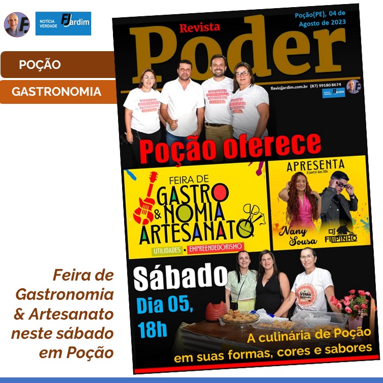 POÇÃO (PE) – Poção, cidade de clima agradável no agreste, de povo acolhedor e de uma cultura diversificada, recebe neste final de semana a Feira de Gastronomia & Artesanato.