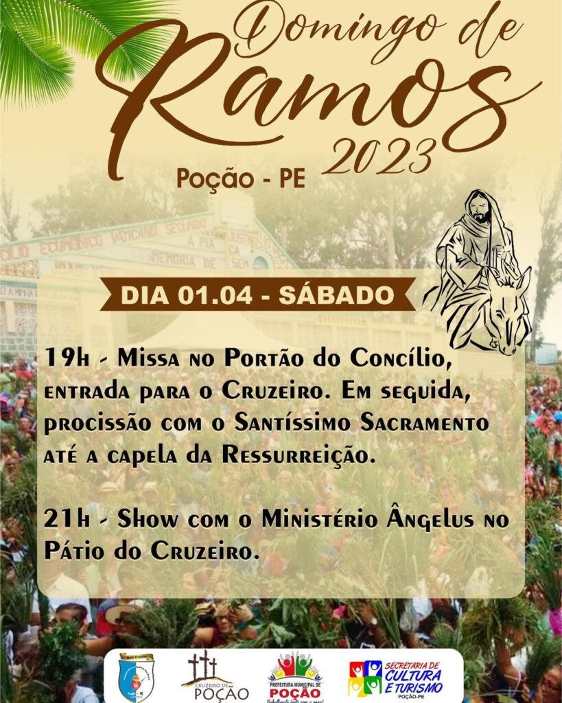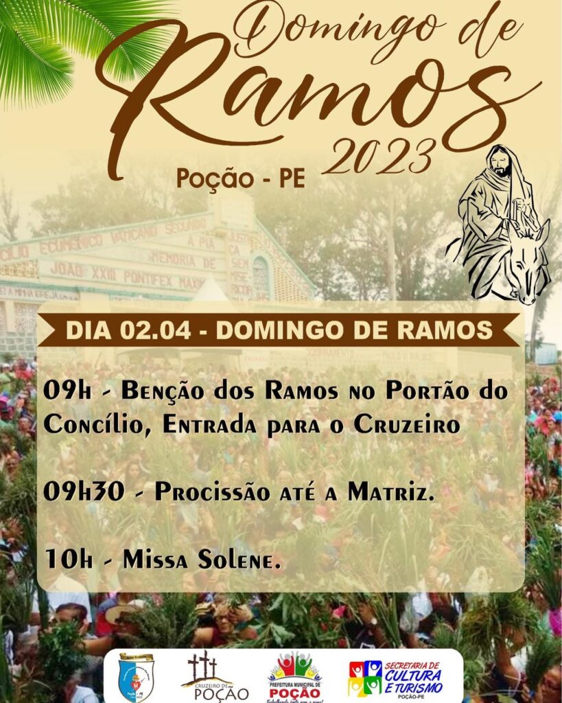 POÇÃO (PE) – Neste dia 02 de abril, a Igreja celebra o Domingo de Ramos, dando início à Semana Santa. Poção, cidade de clima ameno e de ata religiosidade, realiza um dos melhores e mais movimentados Domingos de Ramos do país. A cidade recebe comitivas de fiéis e romeiros vindos de várias cidades de vários estados do Brasil.