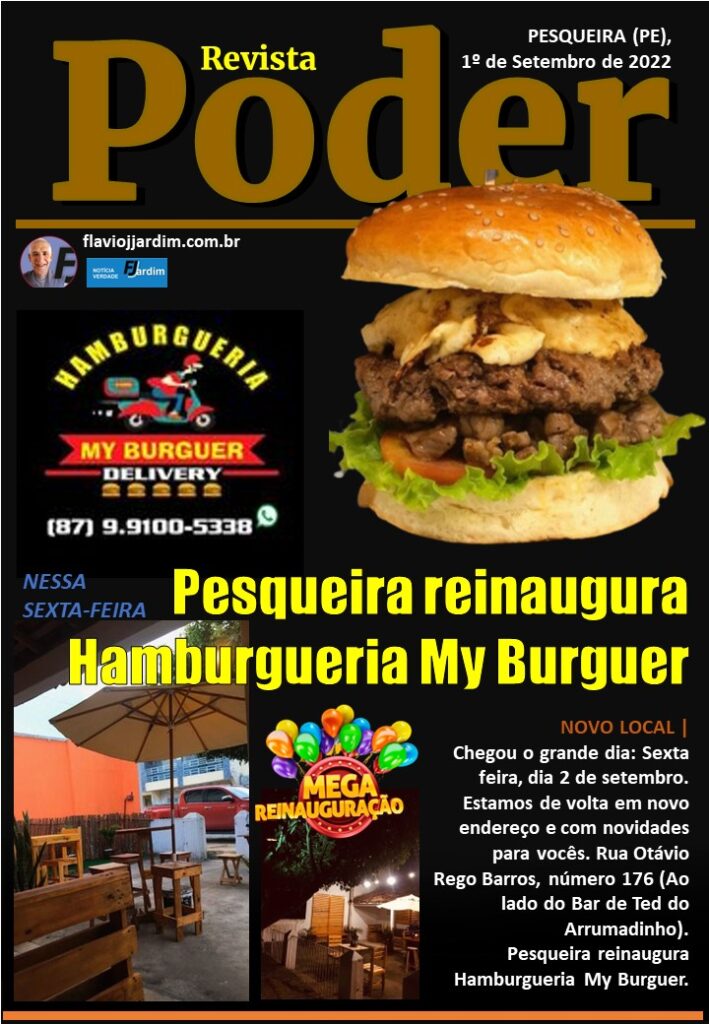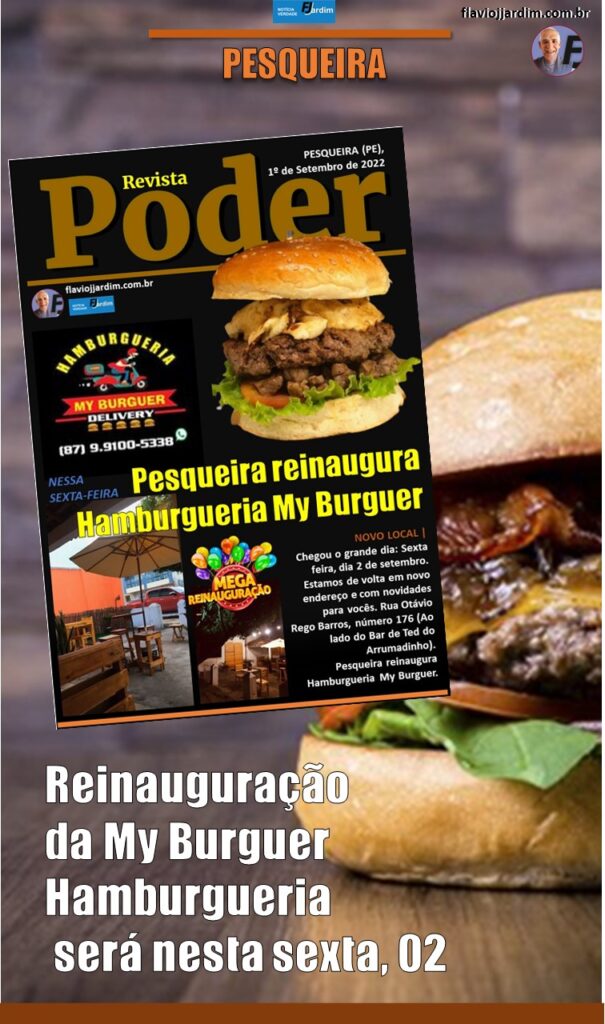 Para melhorar ainda mais esse “combo”, a My Burguer será reinaugurada amanhã, 02 de setembro, em novo endereço, na Rua Otávio Bezerra do Rego Barros, 176, ao lado do Bar Ted do Arrumadinho. A área tornou-se um novo e divertido point da gastronomia pesqueirense.