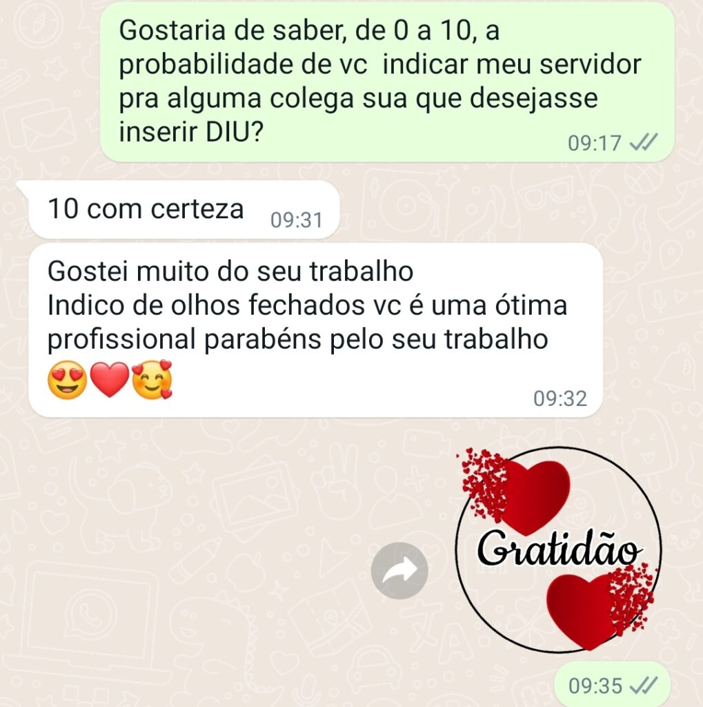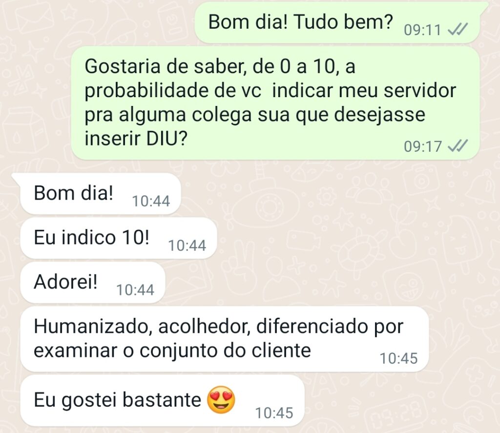 A clínica vem recebendo ótimos feedback’s (respostas positivas), como você caro leitor pode ver logo abaixo.