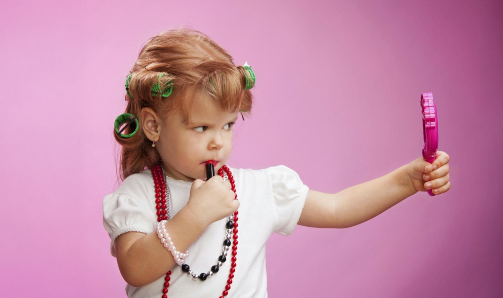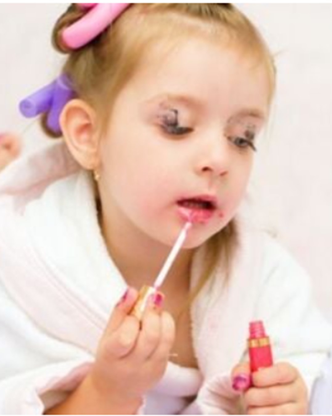 O salto alto substitui o tênis gasto de brincar na rua, o celular ocupa o lugar do pião e da boneca, e a maquiagem apaga a naturalidade da pele ainda em formação. Não é evolução, é perda.