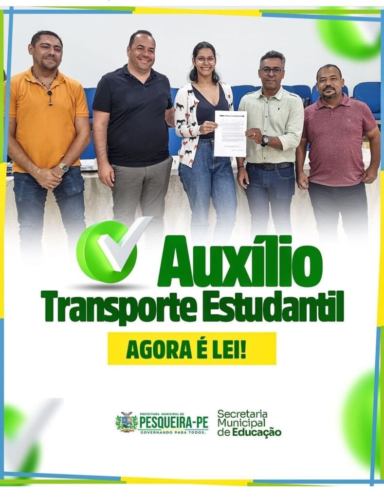 PESQUEIRA (PE) – O Auxílio Transporte Estudantil agora é Lei. Hoje, m08 de agosto, foi assinado o Auxílio Transporte Estudantil para todos os universitários do município.