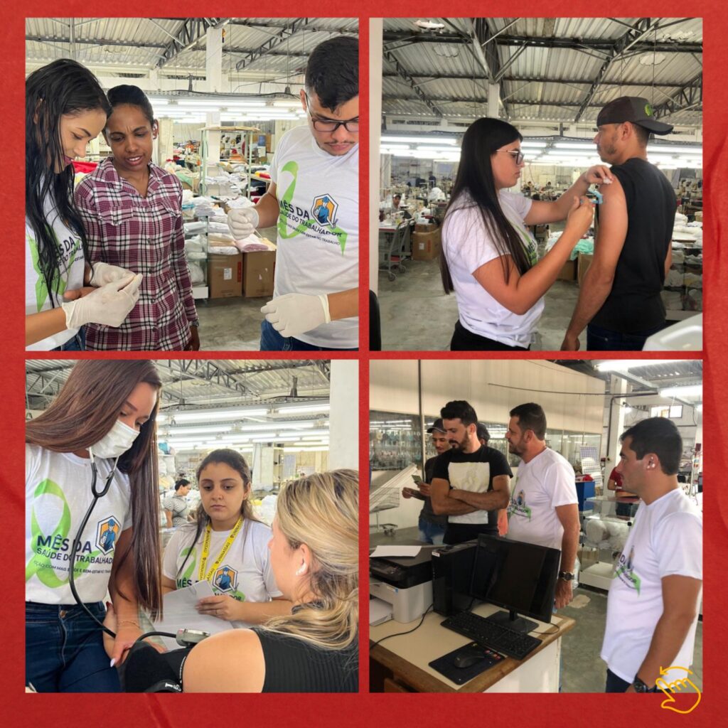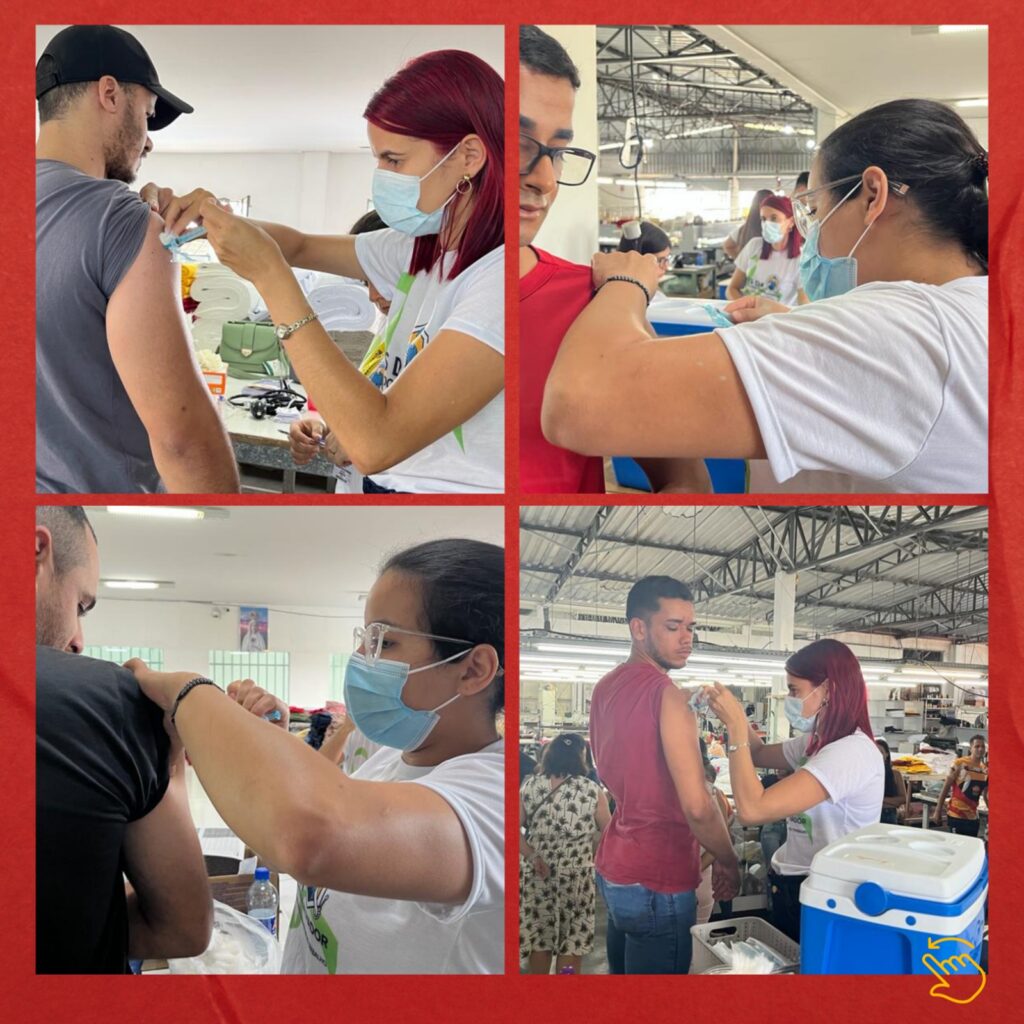 Segunda, dia 15, a Saúde esteve presente na Fábrica Noemy - Rendas e Renascença, a qual os gestores (Emerson e Genailson) agradecem através de Cida e Noemy, a participação de todos os trabalhadores presentes.