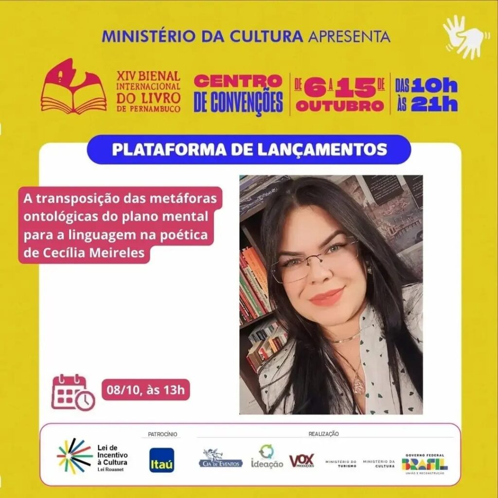 A XIV Bienal Internacional do Livro de Pernambuco, que será realizada no Centro de Convenções de Pernambuco, acontecerá de 6 a 15 de outubro, das 10h às 21h. Além do lançamento do livro de Nikelly Silva, o evento contará com uma ampla programação literária, palestras, sessões de autógrafos e a presença de diversos autores e editoras renomadas.