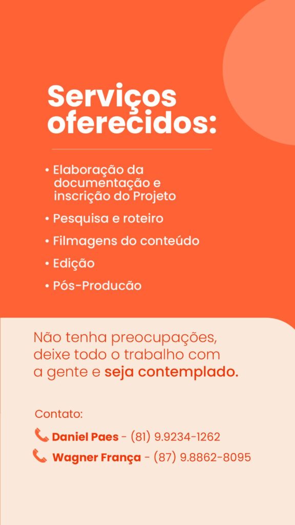 A gama de serviços oferecidos pela equipe não se limita apenas à papelada burocrática. A assessoria de Daniel Paes e Wagner França engloba pesquisa e roteiro, filmagens do conteúdo, edição e pós-produção. Essa abordagem integrada visa não apenas atender às exigências formais da lei, mas também criar projetos visualmente impactantes e culturalmente relevantes.